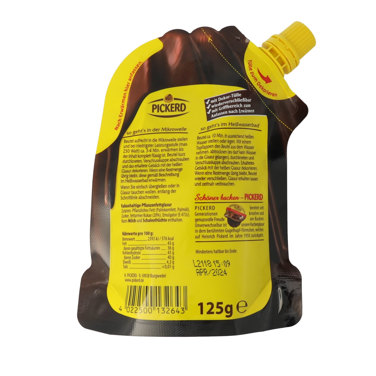 Die Kakaoglasur mit ihrem unvergleichlich fein-herben Schokoladengeschmack und ihrem besonderen Glanz ist das Highlight auf jeder Backkreation. Seit Jahrzehnten die beliebteste und bekannteste Geschmacksrichtung und der absolute Klassiker unter den Kuchenglasuren. Die Glasur kann sowohl in der Mikrowelle als auch im Heißwasserbad erwärmt werden und hat einen einzigartigen, praktischen Bereich zum Anfassen, der nicht heiß wird.