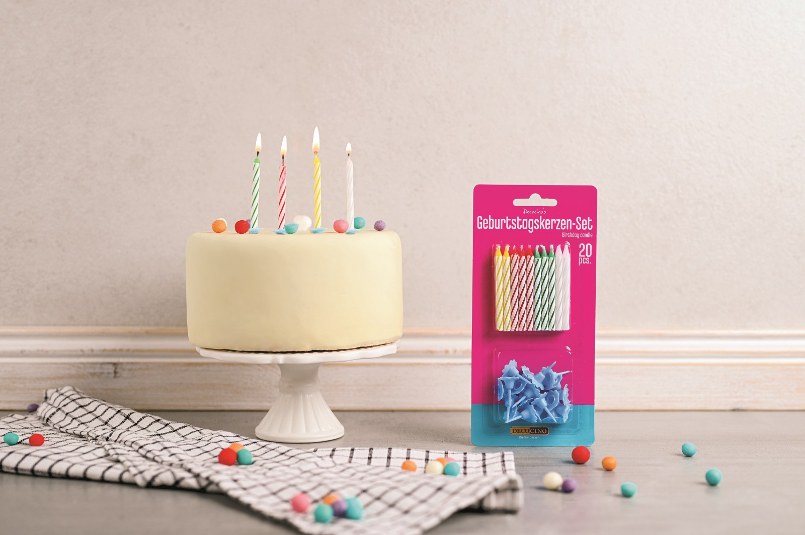 Manchmal kommt der nächste Geburtstag schneller, als man denkt. Daher sollte man das Decocino Geburtstagskerzen-Set immer auf Vorrat zuhause haben. Die Geburtstagsdeko ist die perfekte Grundausstattung und passt auf alle Geburtstagskuchen, Geburtstagstorten, Muffins oder Cupcakes. Die Decocino Geburtstags-Minikerzen im klassischen Streifenlook und in vier fröhlichen Farben sind das ideale Backzubehör. Diese süßen Kuchenkerzen bringen garantiert das Geburtstagskind zum Strahlen.