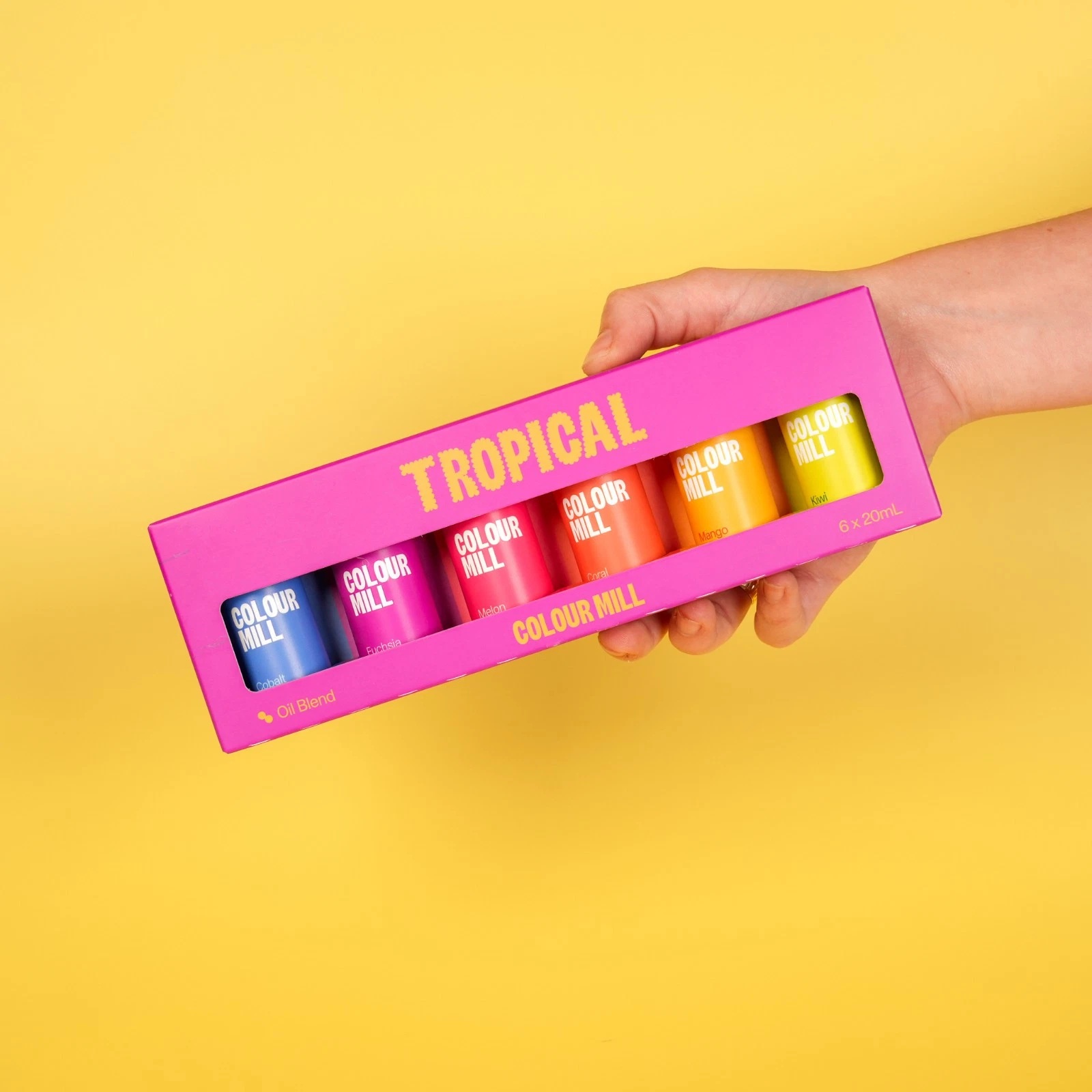 Das Colour Mill Tropical Set besteht aus den Farben: Mango, Kiwi, Coral, Melon, Fuchsia, Cobalt