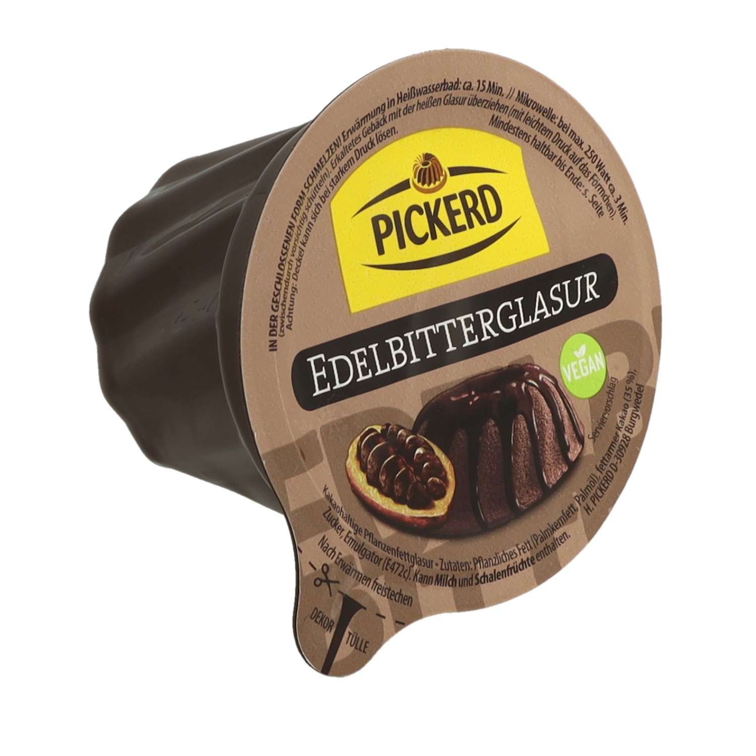 Seit Generationen bekannt und beliebt – die PICKERD Kuchenglasuren in dem unverwechselbaren Gugelhupf-Förmchen, welches auf Heinrich Pickerd im Jahre 1950 zurückgeht. Traditionell werden die Kuchenglasuren aus den besten Zutaten hergestellt und veredeln seit über 60 Jahren Kuchen, Torten und Gebäck. Mit Hilfe unserer einzigartigen Dekor-Tülle sind auch filigrane Dekorationen möglich.