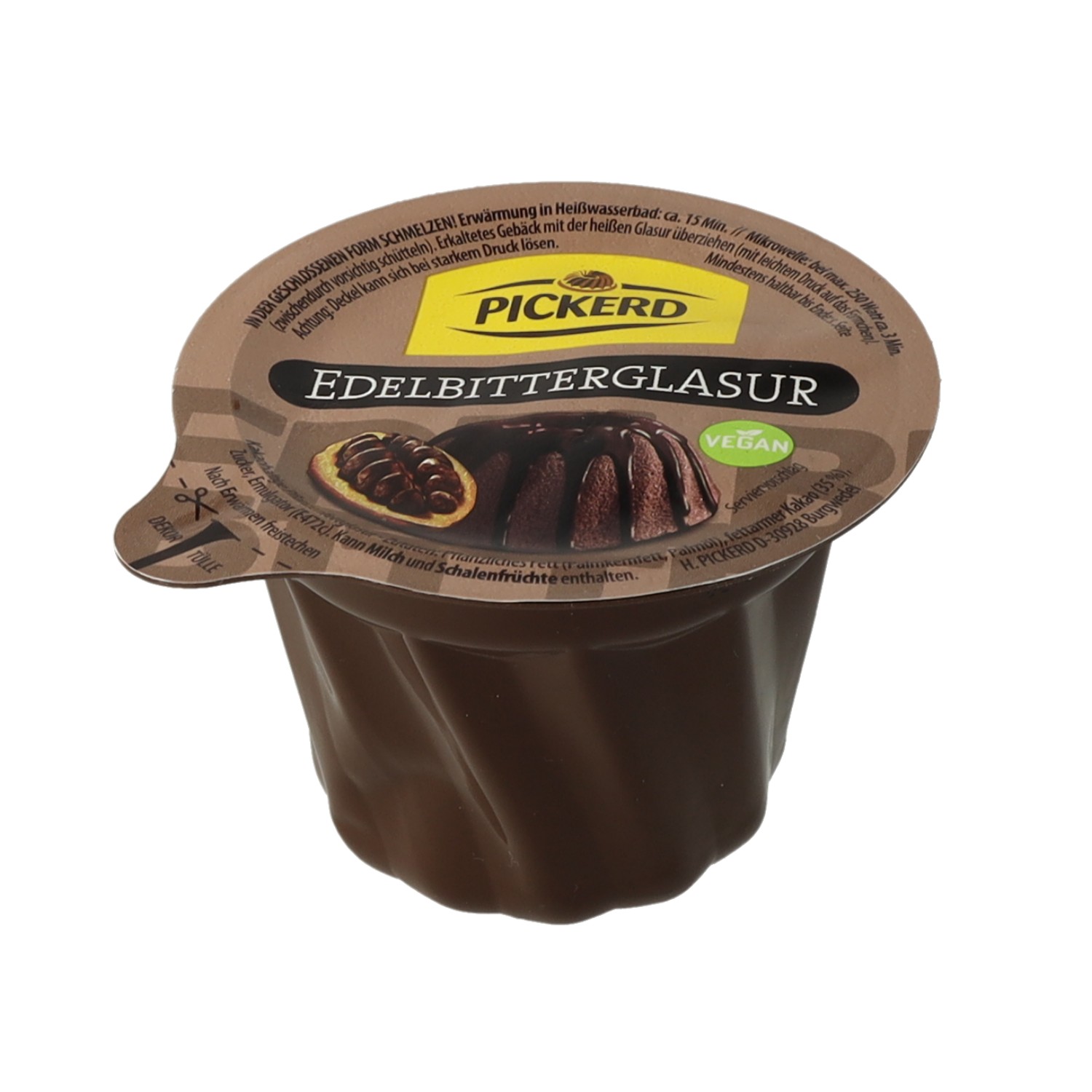 Die einzigartige Edelbitter-Glasur zeichnet sich durch ihren unvergleichlich herben Schokoladengeschmack und die besonders dunkle Farbe aus. Mit ihrem feinen Glanz ist sie das Highlight auf jeder Backkreation und schmeckt besonders den Liebhabern dunkler Zartbitterschokoladen.
