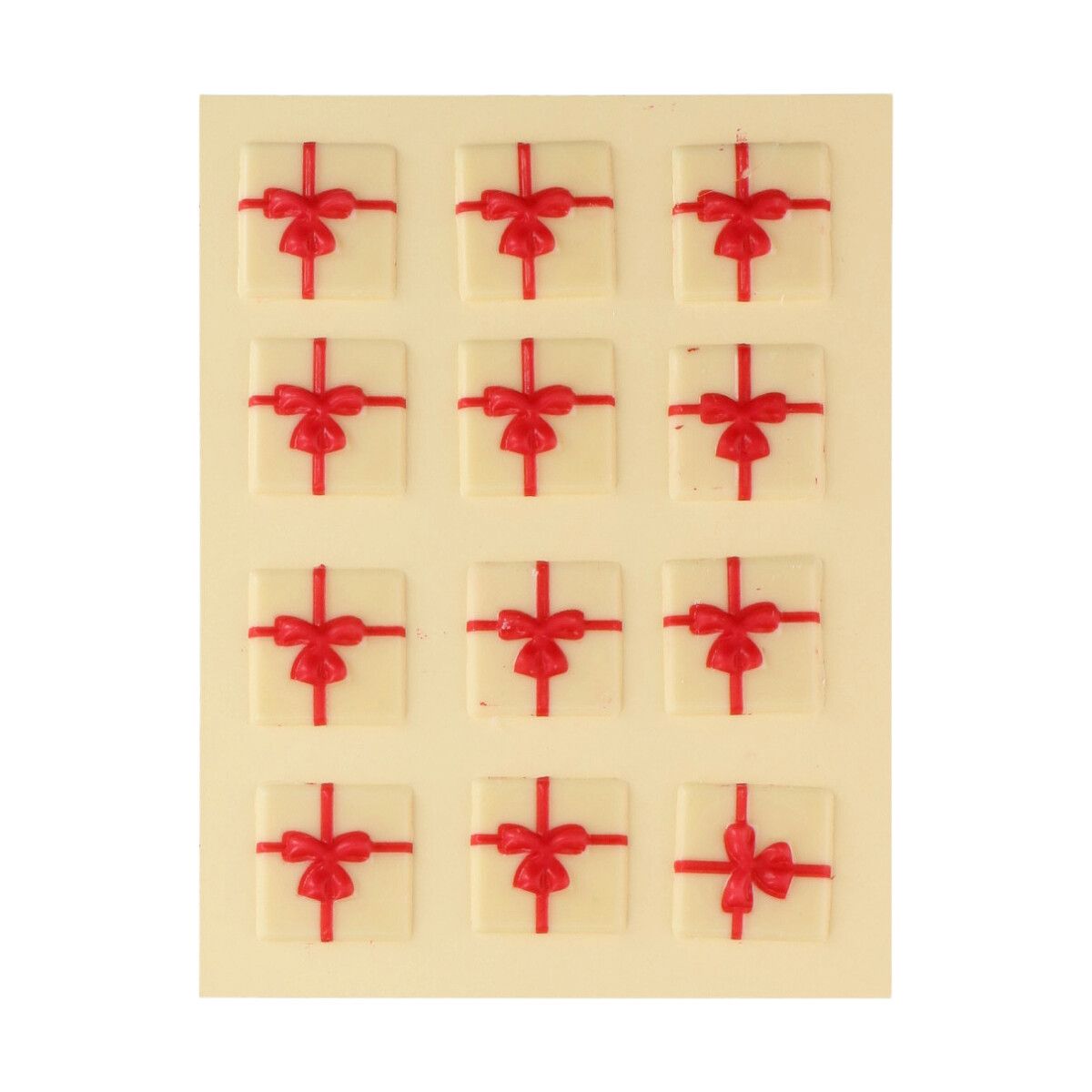 Bringen Sie Stil und Geschmack auf Ihre Gebäck-Kreationen! Diese dekorativen Schokoladen-Geschenkboxen in Weiß mit roter Schleife sind gefertigt aus echter belgischer Schokolade und verleihen Ihren Torten, Cupcakes oder Desserts eine elegante Note. Ideal für Weihnachten oder besondere Anlässe, wenn das Dessert nicht nur schmecken, sondern auch besonders aussehen soll. Die Dekorationen sind sofort aufsetzbar und machen Eindruck!